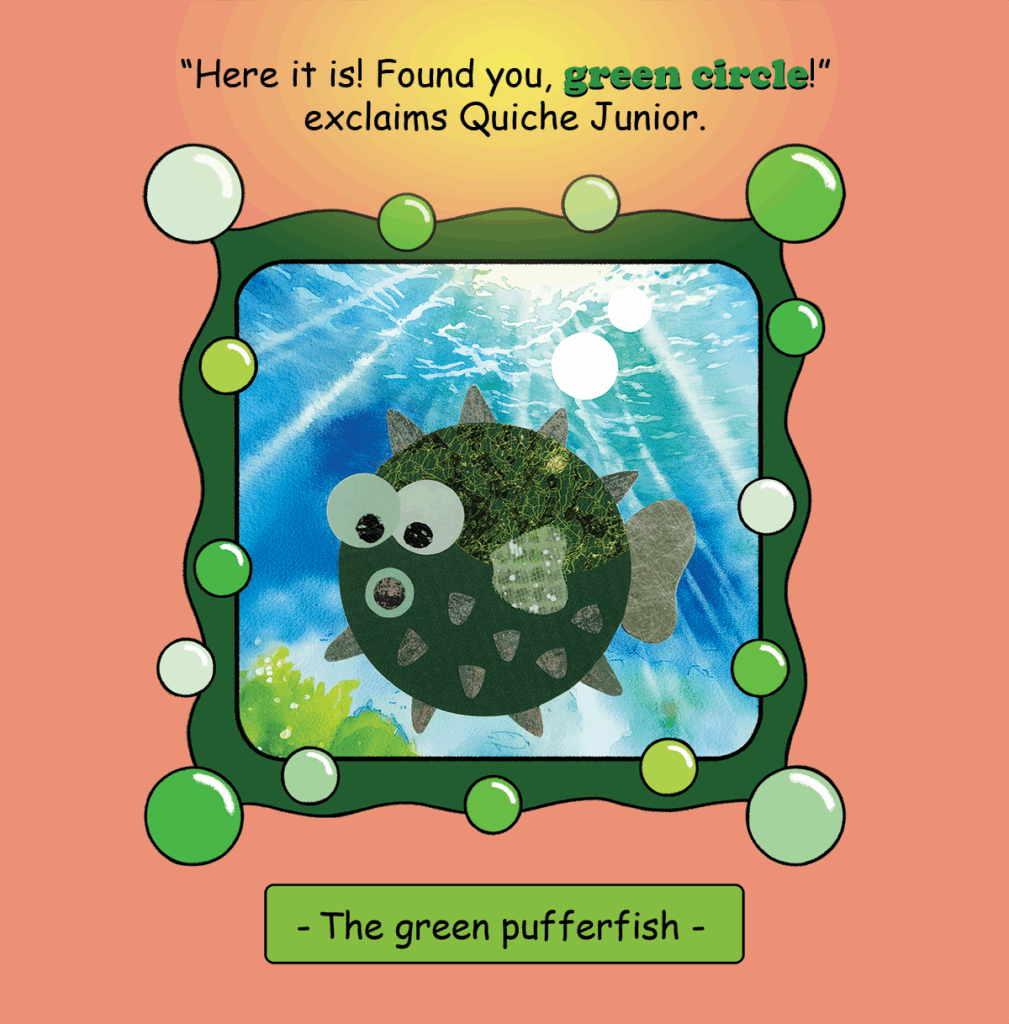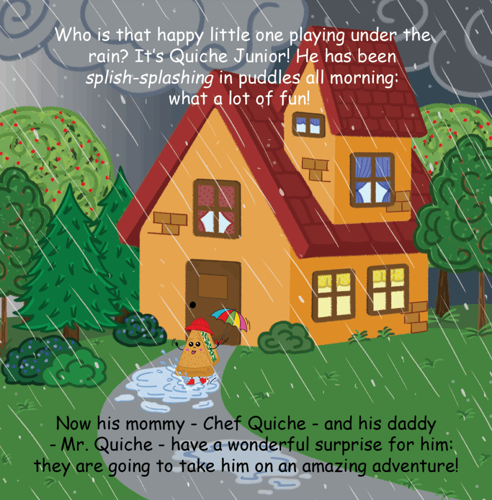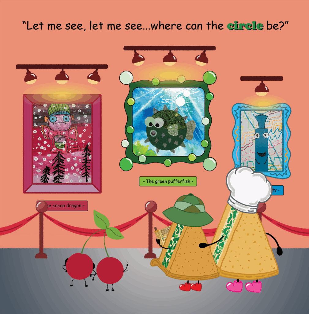 It’s a rainy Saturday afternoon in Happy Pie Ville, and an adventure full of shapes and colors awaits Quiche Junior and his parents at the “Giggle and Grow Museum.” Follow them in their treasure hunt and help them find all the colored shapes hidden in the museum. Get ready to be surprised: the real treasure might be right outside your window!